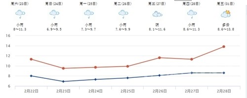因為,現(xiàn)在正是“雨水”節(jié)氣的嘛。至于下周五個工作日的烘烘兒太陽福利,勸你還是暫時忘記了吧~你看,從星期六晚上到星期一白天,雨水占領了好大一塊地皮。