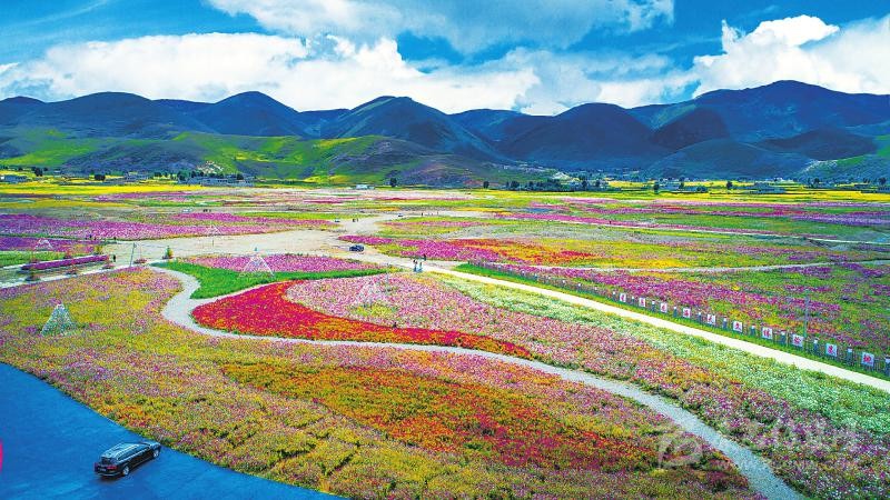 2018年9月,距甘孜州稻城縣城7公里的色拉鄉(xiāng)八美村山谷,1500余畝格?;ㄩ_成壯美“花海”。而這里以前曾經(jīng)是沙化嚴(yán)重的低效益牧場(chǎng)。