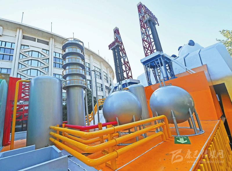 彩車上的新能源頁巖氣開發(fā)設施造型。川報記者肖雨楊攝