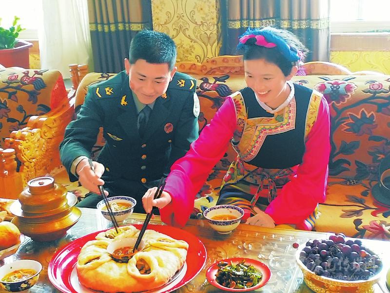 在中國(guó)文化中,吃面自古以來(lái)就有福壽延綿的美好寓意。圖為10月2日,駐甘孜巴塘官兵與夏邛鎮(zhèn)群眾同吃巴塘冒面,為祖國(guó)慶生,祝愿祖國(guó)繁榮昌盛、國(guó)泰民安。 華西都市報(bào)-封面新聞?dòng)浾?田雪皎 攝