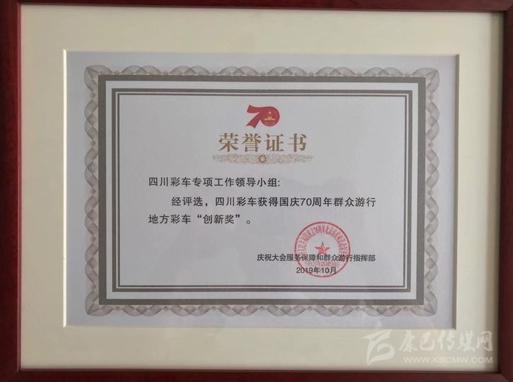 本網(wǎng)訊(楊藝茂)10月9日,記者從省文化和旅游廳獲悉,經(jīng)慶祝大會(huì)服務(wù)保障和群眾游行指揮部評選,四川彩車專項(xiàng)工作領(lǐng)導(dǎo)小組榮獲國慶70周年群眾游行地方彩車“創(chuàng)新獎(jiǎng)”。