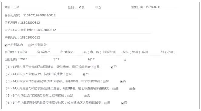 (二)服務(wù)內(nèi)容。居住地醫(yī)療衛(wèi)生機(jī)構(gòu)對(duì)申報(bào)人在開(kāi)展流行病學(xué)史調(diào)查、測(cè)量體溫的基礎(chǔ)上,為符合條件的申報(bào)人出具《四川外出人員健康申報(bào)證明》。