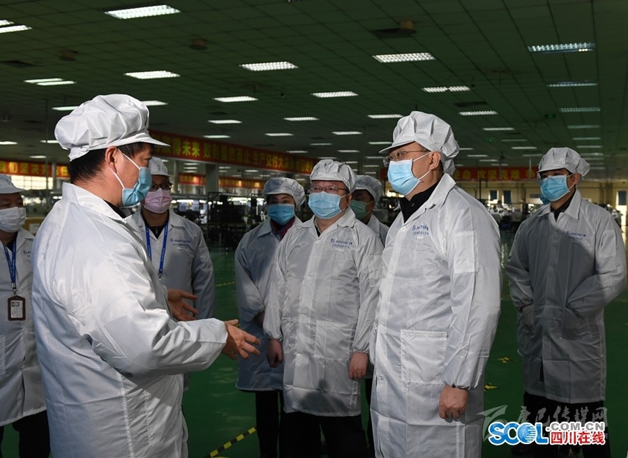 尹力前往際華三五三六實業(yè)有限公司,調(diào)研防護(hù)服等疫情防控物資生產(chǎn)情況。他說,醫(yī)療防護(hù)物資是打贏疫情防控阻擊戰(zhàn)的重要保障,企業(yè)要開足馬力加緊生產(chǎn),同時要堅持以產(chǎn)品質(zhì)量為生命線,強(qiáng)化技術(shù)裝備創(chuàng)新,優(yōu)化生產(chǎn)工藝流程,保證產(chǎn)品質(zhì)量安全可靠,相關(guān)部門要組織專家加強(qiáng)技術(shù)指導(dǎo),地方要強(qiáng)化要素保障,幫助企業(yè)解決生產(chǎn)遇到的具體困難問題,努力為全省乃至全國疫情防控作貢獻(xiàn)。在京東方光電科技有限公司和四川九洲電器集團(tuán),尹力詳細(xì)了解企業(yè)落實疫情防控措施和復(fù)工復(fù)產(chǎn)情況,鼓勵企業(yè)根據(jù)疫情發(fā)展和整體防控要求,不斷完善和優(yōu)化管理工作,把防控措施做得更精準(zhǔn)更到位,讓企業(yè)運行更高效成本更低。地方政府要突出抓好穩(wěn)就業(yè)、穩(wěn)企業(yè)的工作,組織身體健康的群眾及時返崗就業(yè),更加主動服務(wù)企業(yè)復(fù)工復(fù)產(chǎn)。他強(qiáng)調(diào),高科技企業(yè)要在疫情防控中發(fā)揮科技優(yōu)勢作用,要對標(biāo)社會管理需要和群眾生活需求,組織研發(fā)生產(chǎn)對路產(chǎn)品,增強(qiáng)市場競爭力和占有率。