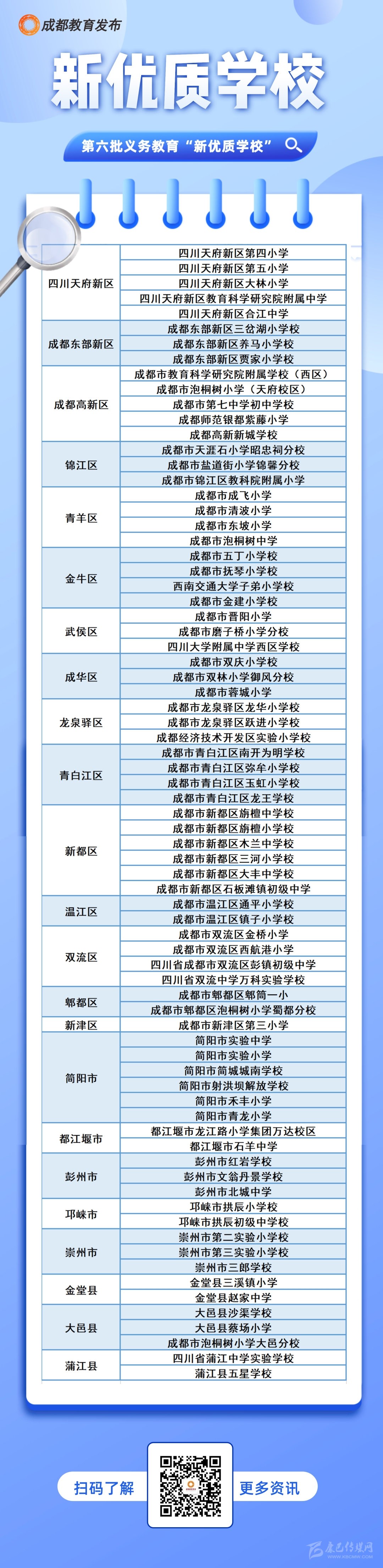 記者從成都市教育局獲悉,1月13日,成都市教育局公布全市第六批義務教育“新優(yōu)質學校”名單,成都七中初中學校等75所學校被認定為全市義務教育“新優(yōu)質學?!保麊胃胶螅?。