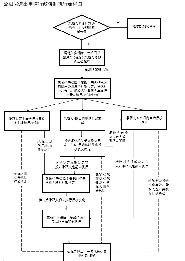 根據(jù)《指導(dǎo)手冊》,公租房退出以承租人行為和情形不同分為退回和騰退兩種方式,屬地住房保障主管部門對承租人到期拒不退出房屋及設(shè)施設(shè)備的,應(yīng)作出責(zé)令其限期騰退公租房的書面決定,逾期仍不履行的,可依法向人民法院申請行政強(qiáng)制執(zhí)行,“剛?cè)岵?jì)”解決公租房退房難問題。