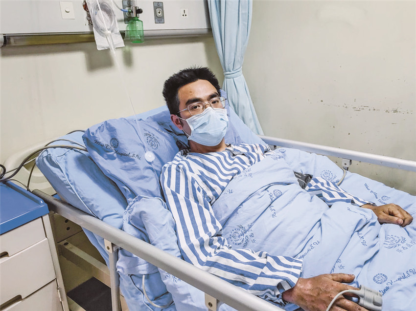 9月26日,在四川大學(xué)華西醫(yī)院創(chuàng)傷醫(yī)學(xué)中心普通病房里,甘宇在病床上休息。 新華社發(fā)