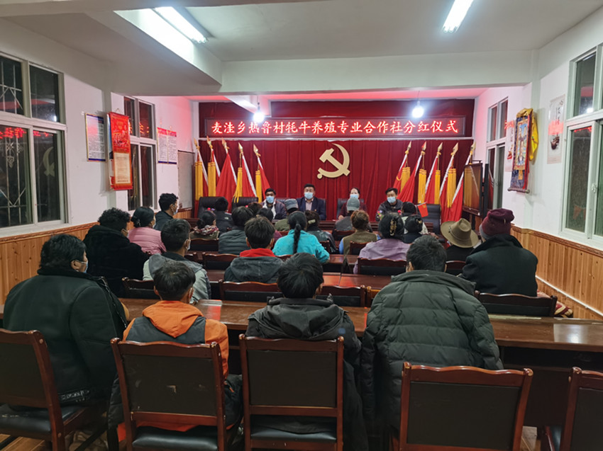 圖為沈陽在拉日馬鎮(zhèn)集體牧場了解產(chǎn)業(yè)發(fā)展情況。