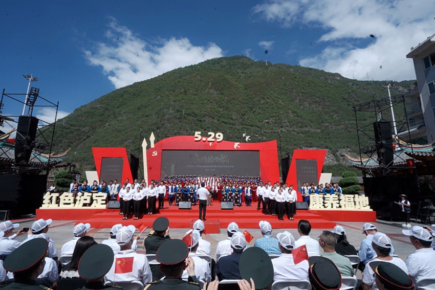 跨越時(shí)空“唱和”不朽的世紀(jì)贊歌,沉浸式禮贊澎湃的紅色記憶。5月29日,備受期待的瀘定縣“5·29”群眾文化惠民活動(dòng)暨大型合唱展演在瀘定橋廣場(chǎng)舉行。來自縣級(jí)各系統(tǒng)各鄉(xiāng)鎮(zhèn)的14支合唱代表隊(duì)1500余名黨員干部、群眾登臺(tái)獻(xiàn)唱,唱響紀(jì)念紅軍飛奪瀘定橋勝利88周年的新時(shí)代“永恒贊歌”,一幅“聲”情告白黨和國(guó)家的音樂長(zhǎng)卷在瀘定橋邊徐徐鋪展,8萬兒女用堅(jiān)定的歷史自覺和文化自信抒發(fā)愛黨愛國(guó)愛“紅色瀘定·康養(yǎng)福地”的款款深情。