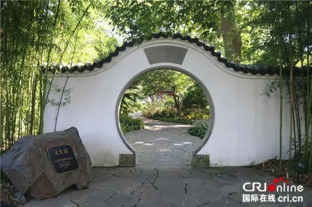 △ 位于密蘇里植物園內(nèi)的中國(guó)江南古典園林“友寧園”正門。(攝影:劉坤)