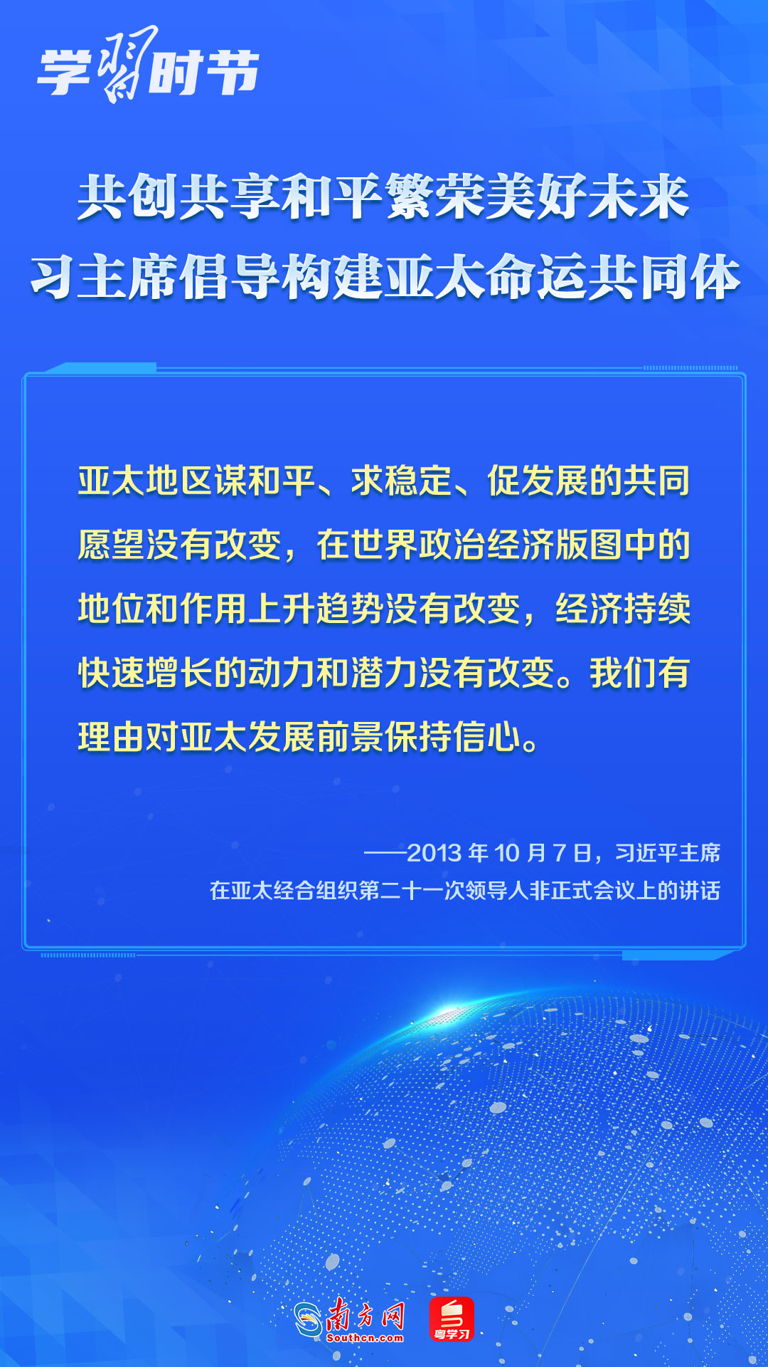 中國一直是APEC的積極參與者、貢獻者,為推動建設亞太大家庭發(fā)揮了重要作用。習近平主席多次出席APEC會議,以中國主張促進亞太合作,以中國貢獻推動亞太發(fā)展,以中國智慧凝聚亞太共識,多次闡述構建開放包容、創(chuàng)新增長、互聯(lián)互通、合作共贏的亞太命運共同體的理念主張和重大意義,讓我們一同學習。