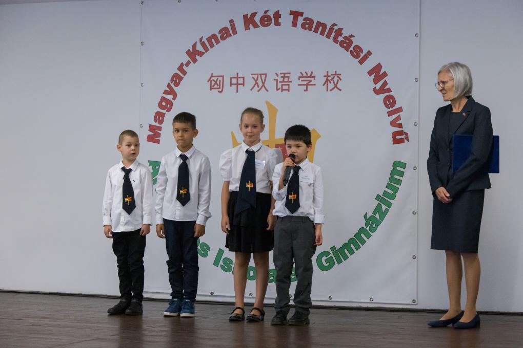 2022年9月1日,在匈牙利首都布達佩斯,學生們參加匈中雙語學校新學年開學典禮。