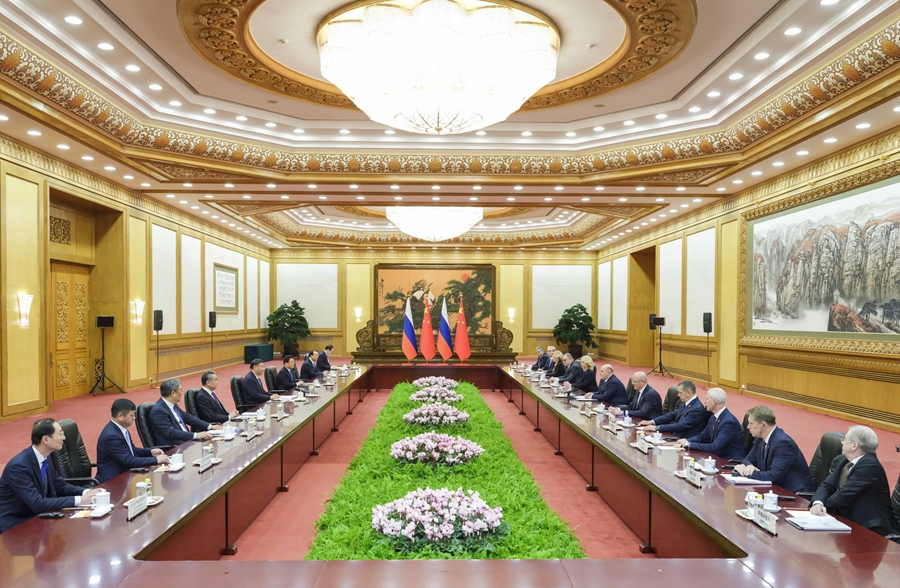 習近平強調(diào),中國經(jīng)濟韌性強、潛力大、回旋余地廣、長期向好的基本面沒有改變。中國堅定推動高質(zhì)量發(fā)展,推進高水平對外開放,將為包括俄羅斯在內(nèi)的各國發(fā)展提供新機遇。雙方要充分發(fā)揮政治互信、經(jīng)濟互補、設(shè)施互聯(lián)、民心互通優(yōu)勢,不斷豐富合作內(nèi)涵,深化經(jīng)貿(mào)、能源、互聯(lián)互通等領(lǐng)域合作,共同維護產(chǎn)業(yè)鏈供應(yīng)鏈安全穩(wěn)定。雙方要辦好明后兩年中俄文化年,多設(shè)計、多開展豐富多彩的人文交流活動,夯實兩國世代友好的社會和民意基礎(chǔ)。