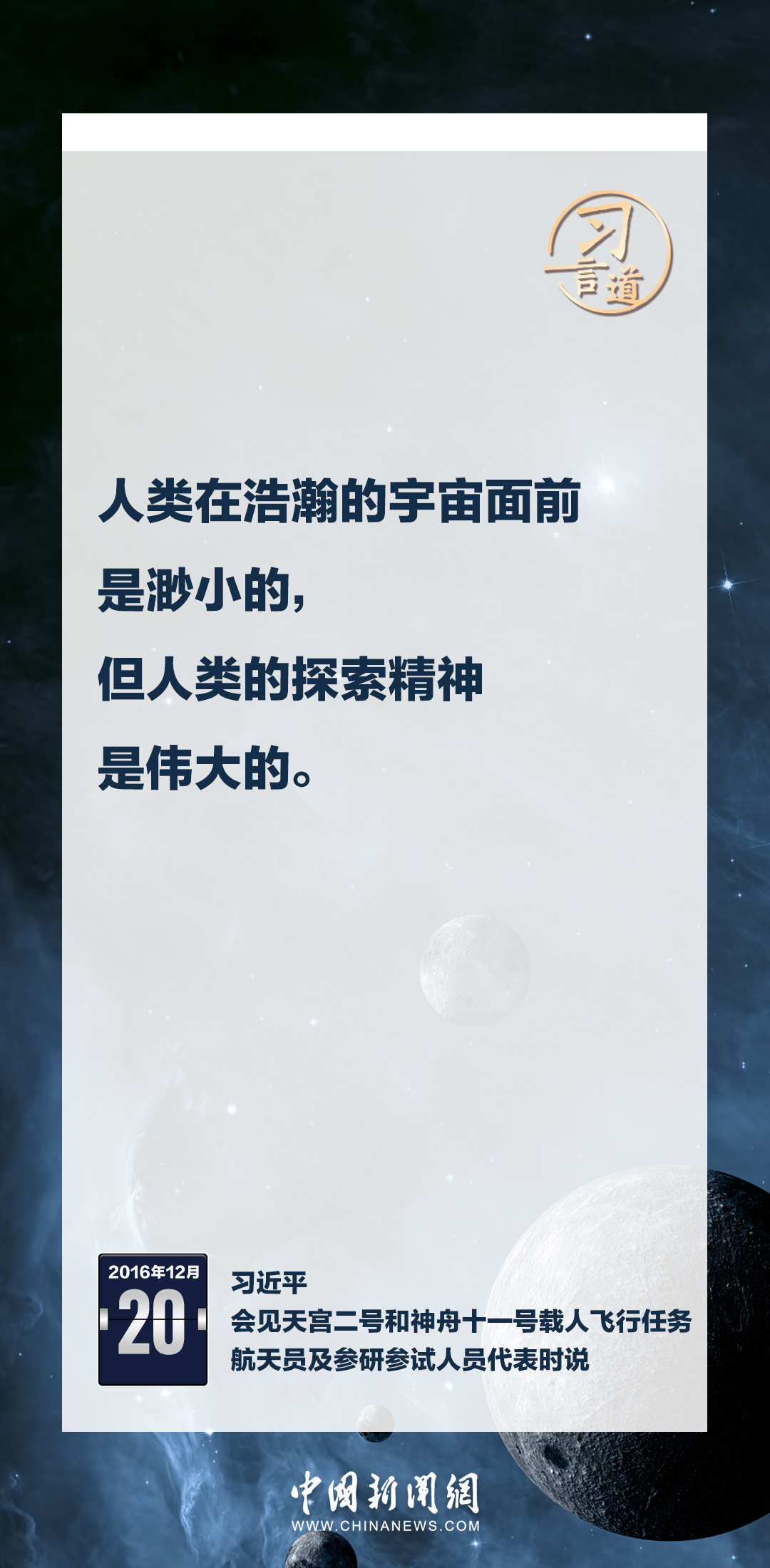 建設(shè)航天強(qiáng)國要靠一代代人接續(xù)奮斗。在不同場合,習(xí)近平總書記頻頻提及航天精神,激勵(lì)一代代中國人不斷奮進(jìn)、筑夢(mèng)太空。