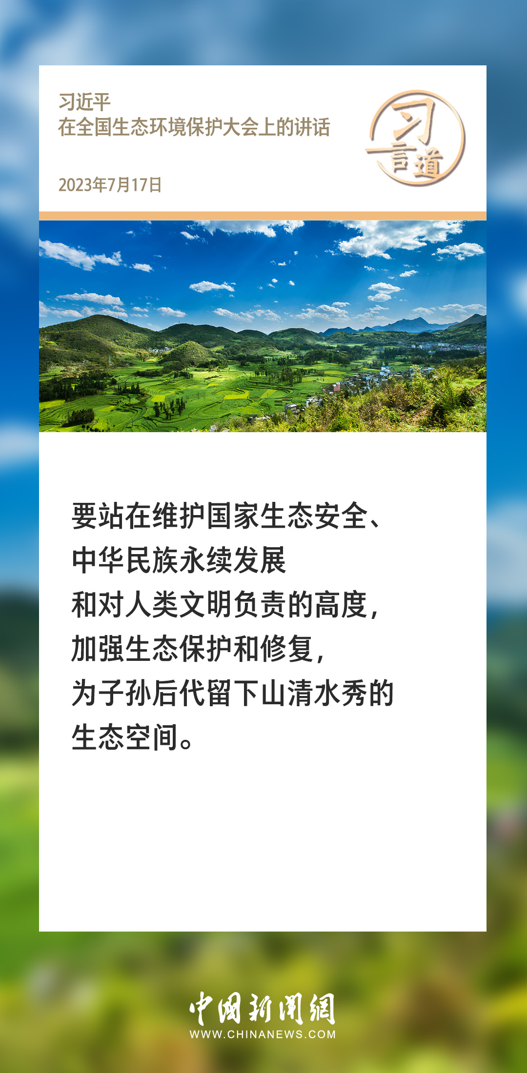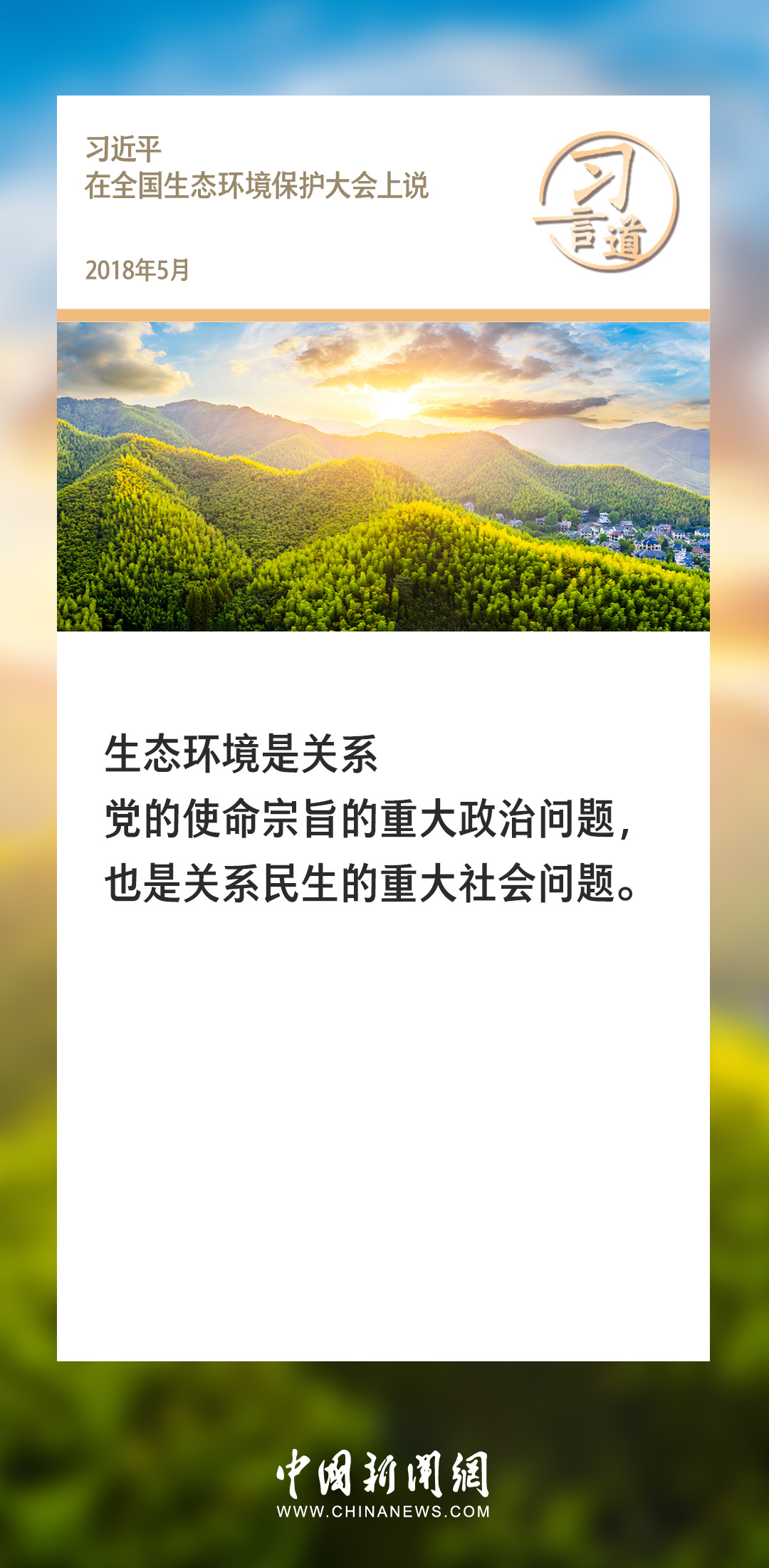 生態(tài)文明建設(shè)是關(guān)系中華民族永續(xù)發(fā)展的根本大計(jì)。黨的十八大以來,習(xí)近平總書記就生態(tài)文明建設(shè)發(fā)表過一系列重要論述,諸多“金句”深入人心。