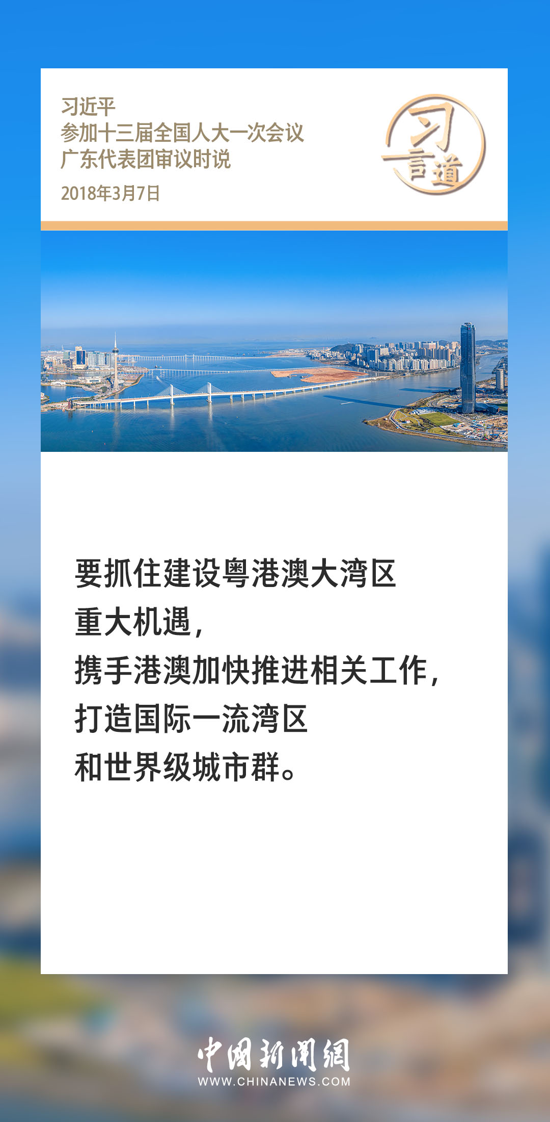 習(xí)近平總書記高度重視粵港澳大灣區(qū)建設(shè),多次作出重要論述,從全局高度為粵港澳大灣區(qū)發(fā)展擘畫藍(lán)圖。