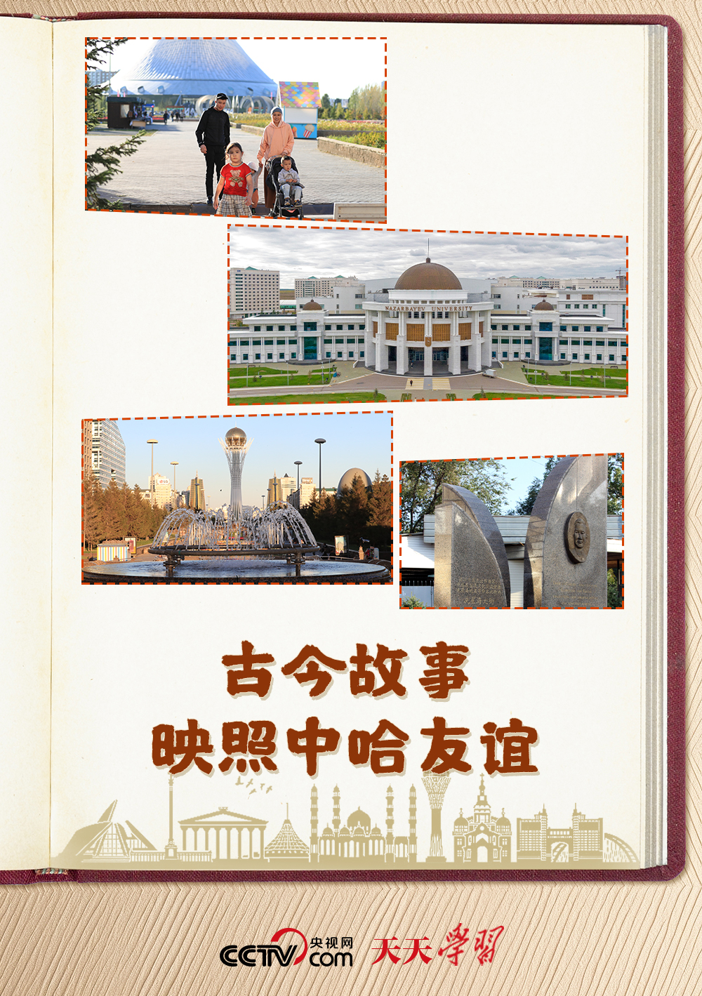 2013年9月,習(xí)近平主席在哈薩克斯坦納扎爾巴耶夫大學(xué)發(fā)表重要演講。正是在這次演講中,習(xí)主席首次提出了建設(shè)“絲綢之路經(jīng)濟(jì)帶”倡議,按下“一帶一路”啟動(dòng)鍵。其間,習(xí)主席還講述了中國著名音樂家冼星海、哈薩克斯坦小伙魯斯蘭等多個(gè)中哈友誼故事。