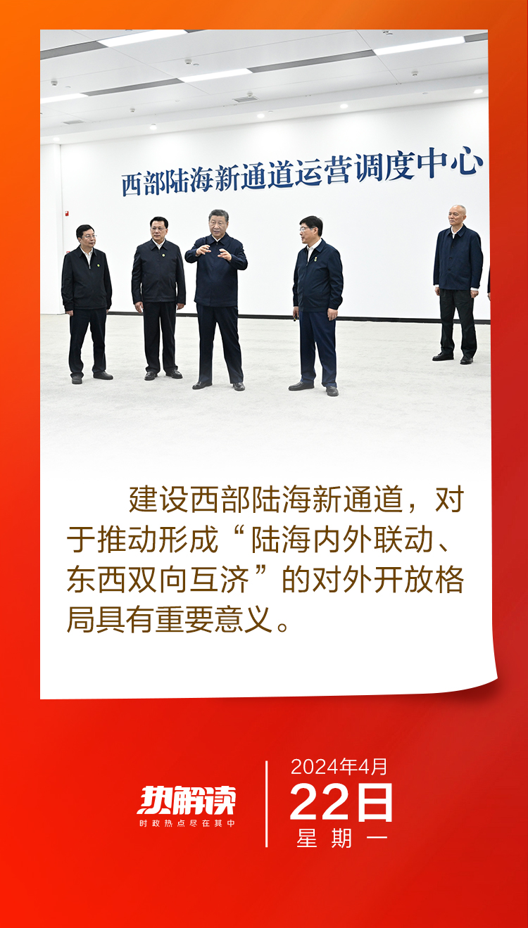 調研西部陸海新通道,總書記指出,各有關方面要齊心協(xié)力,把這一標志性項目建設好、運營好,帶動西部和內陸地區(qū)高水平對外開放。