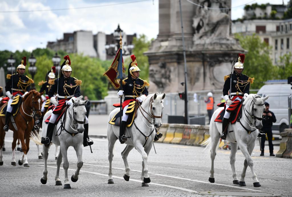 ??歡迎儀式后,習(xí)近平和夫人彭麗媛在共和國衛(wèi)隊148名騎兵組成的禮兵馬隊和摩托車隊護衛(wèi)下,乘車前往愛麗舍宮。
