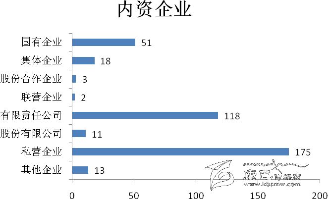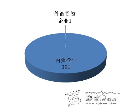 在工業(yè)企業(yè)法人單位中,內資企業(yè)391個,占99.74%;外商投資企業(yè)1個,占0.26%。內資企業(yè)中,國有企業(yè)51 個,占全部企業(yè)的13.01%;集體企業(yè)18 個,占4.59%;私營企業(yè)175 個,占44.64%。