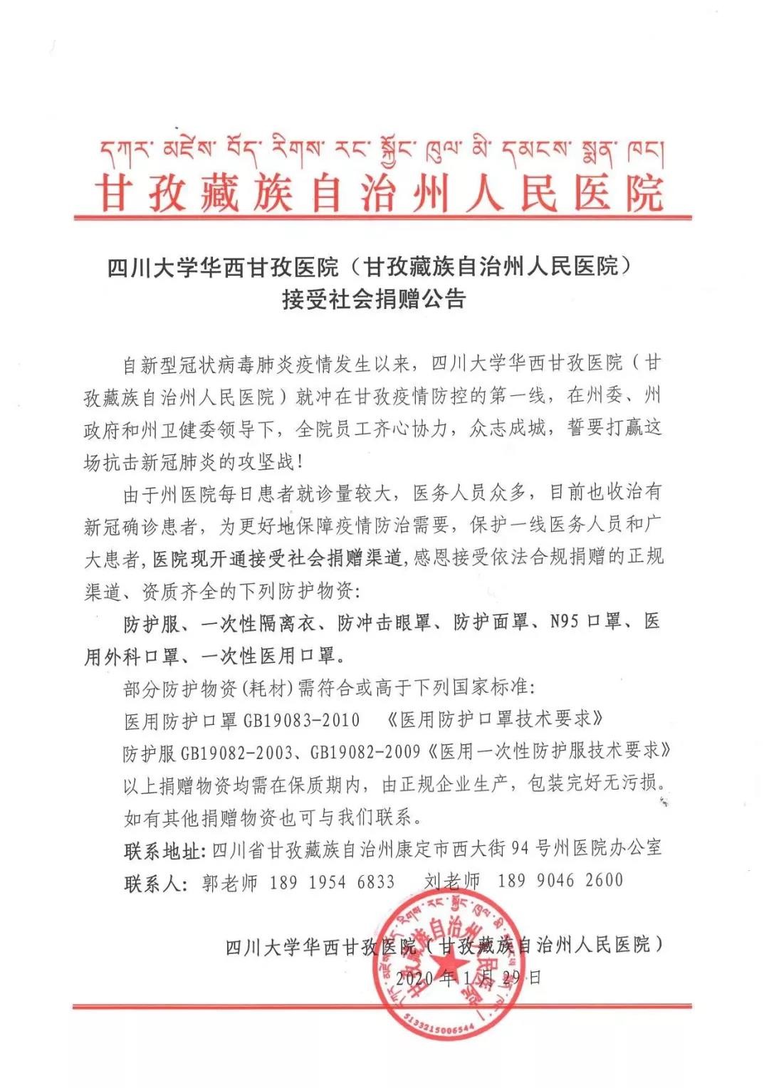 由于州醫(yī)院每日患者就診量較大,醫(yī)務人員眾多,目前也收治有新冠確診患者,為更好地保障疫情防治需要,保護一線醫(yī)務人員和廣大患者, 醫(yī)院現(xiàn)開通接受社會捐贈渠道, 感恩接受依法合規(guī)捐贈的正規(guī)渠道、資質(zhì)齊全的下列防護物資: