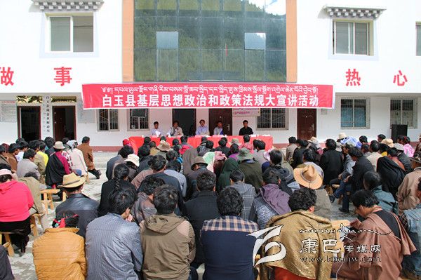 8月的白玉,烈日當(dāng)頭,秋高氣爽。31日上午,絨蓋鄉(xiāng)政府大院內(nèi),白玉縣基層思想政治和政策法規(guī)大宣講活動正在這里精彩“上演”,400多名前來“聽課”的各村群眾正津津有味地品味著縣宣講團(tuán)成員松吉尼瑪通俗易懂的藏語大宣講。從黨的十八大到十八屆三中全會精神,從糧食直補(bǔ)到低保、新農(nóng)保,從養(yǎng)老保險(xiǎn)、殘疾人幫扶到相關(guān)法律法規(guī),宣講者深入淺出,傾聽者全神貫注。