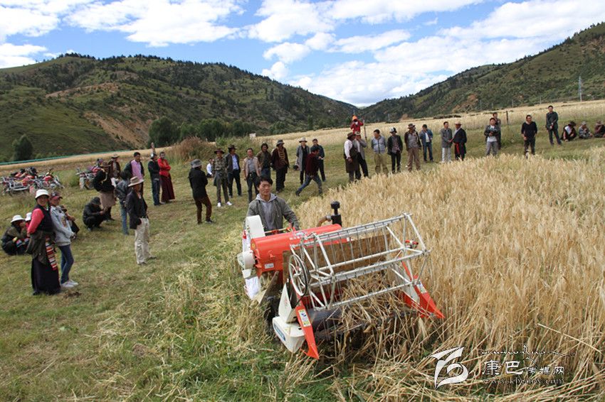 小型聯(lián)合收割機開進理塘高海拔鄉(xiāng)村