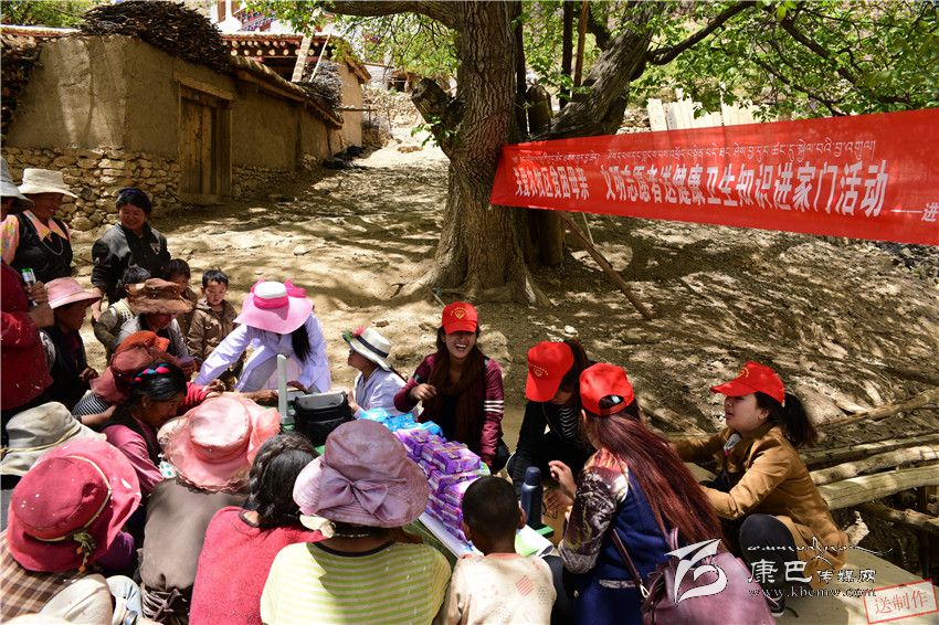 中心絨鄉(xiāng)安里頂村的四郎志瑪剛剛給地里的農作物澆水回來,就發(fā)現(xiàn)村里來了一群戴著小紅帽的“不速之客”,他們周圍聚集著提前趕來的鄉(xiāng)親。兩位穿著白大褂的“小紅帽”正在為排著長隊的鄉(xiāng)親們免費體檢,另外還有兩位戴“小紅帽”的女性志愿者召集婦女村民為她們講解健康衛(wèi)生知識,演示女性衛(wèi)生用品的使用方法。