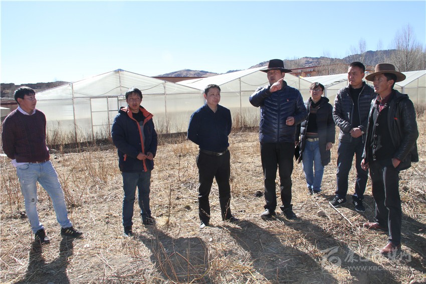 理塘縣委副書記、縣政府縣長鄭顯峰(左四)調研產業(yè)扶貧。
