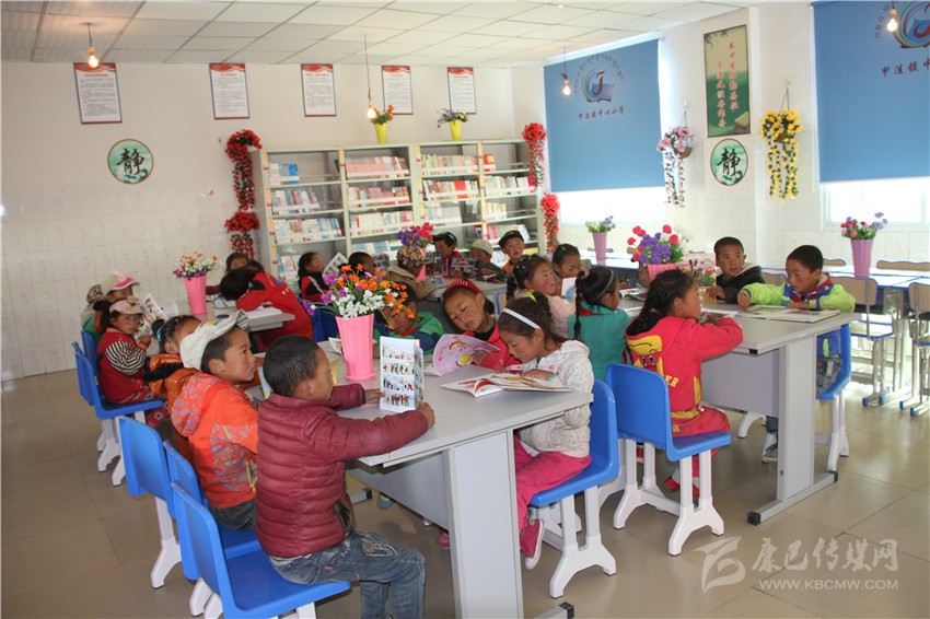 甲洼鎮(zhèn)小學生在閱覽室看書。