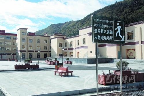 “這邊是避難廣場(chǎng),設(shè)置有救災(zāi)物資儲(chǔ)備倉(cāng)庫(kù)等;廣場(chǎng)邊還有露天水儲(chǔ)備設(shè)備和供水設(shè)施,一旦遇到緊急情況,這些設(shè)施可以馬上啟用。避難廣場(chǎng)外是新建成的濱河路,這一帶曾經(jīng)是爛泥灘。”因?yàn)闉?zāi)后重建,陳慶在道孚八美鎮(zhèn)一住就是3年,在介紹起八美鎮(zhèn)的災(zāi)后重建成果時(shí),他顯得有些自豪。