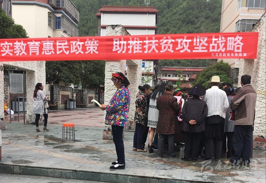 為使學(xué)生資助政策做到家喻戶曉,九龍縣教育體育局先后在縣民族廣場、縣政府一號樓八樓會議室面向農(nóng)牧民群眾和干部職工開展了集中宣傳宣講,并深入乃渠、烏拉溪等鄉(xiāng)鎮(zhèn)開展了教育惠民政策宣講工作。僅2017年8月,共計發(fā)放《大學(xué)新生入學(xué)資助申請表》30份、《建檔立卡貧困學(xué)生特殊資助申請流程》150份、《生源地助學(xué)貸款宣傳資料》600余份、《甘孜州非義務(wù)教育階段貧困家庭學(xué)生資助》100余份。