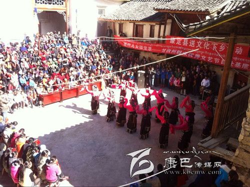 12月2日,康定縣捧塔鄉(xiāng)捧塔寺內(nèi)人頭攢動(dòng),熱鬧非凡,由康定縣旅游文化局組織的送文化下鄉(xiāng)惠民演出吸引了周邊的眾多群眾前來觀看。 演出在州歌舞團(tuán)演員歡快的舞蹈中拉開帷幕。一曲曲耳熟能詳?shù)母枨?、一支支熱情洋溢的舞蹈為農(nóng)牧民群眾送上了一份文化厚禮。演出結(jié)束,意猶未盡的捧塔村民說:“今天一大早我就等在這里,農(nóng)村的文化生活簡單枯燥,好久沒有看到這么精彩豐富的文藝節(jié)目了,它不但豐富了我們的文化生活,還宣傳了黨的惠民政策,這樣的方式比傳統(tǒng)的開會(huì)宣傳更能讓大家知曉、熟記各項(xiàng)富農(nóng)惠民政策,也更受大家歡迎,希望這樣的活動(dòng)以后能多多舉辦。”圖為演出現(xiàn)場。(李瑤 攝影報(bào)道)