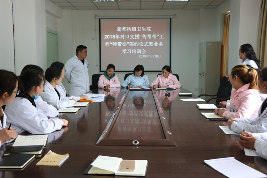 春風(fēng)沐浴、雨露滋潤;德隆情盛、高屋建瓴。為進一步提升康定地區(qū)基層醫(yī)療衛(wèi)生機構(gòu)服務(wù)能力,打造一支有擔(dān)當、有能力、可支撐的本土醫(yī)療衛(wèi)生人才隊伍。在對口幫扶工作中,康定市衛(wèi)計局高度重視本土人才培養(yǎng),將“傳幫帶”工作作為了重點。2018年1月8日,康定市疾控中心與都江堰市疾控中心通過座談商榷了“傳幫帶”幫扶方案,達成了共識,下一步將通過對口幫扶,互訪交流、業(yè)務(wù)培訓(xùn),信息溝通共享等方式,在綜合管理、等級評審、人員能力建設(shè)、實驗室檢驗檢測能力建設(shè)、應(yīng)急處置能力建設(shè)等方面進行重點“傳幫帶”。與此同時,康定市第二人民醫(yī)院舉辦了對口支援“傳幫帶”工程“師帶徒”簽約儀式暨工作推進會議。會上各位專家與選中的學(xué)員進行現(xiàn)場簽約,雙方約定在今后的一年中,專家們通過理論培訓(xùn)、教學(xué)手術(shù)(操作)、教學(xué)查房、疑難病例討論、常見病多發(fā)病診治、開展新技術(shù)新業(yè)務(wù)等方面進行指導(dǎo)、幫扶、協(xié)作,明確了各自的目標任務(wù)和工作職責(zé)。
