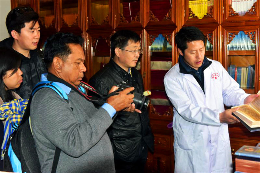 “這么多的藏文書籍和藏醫(yī)藥,還真是第一次見到!”在參觀藏醫(yī)院博物館時(shí),主播拉西略顯激動(dòng)。