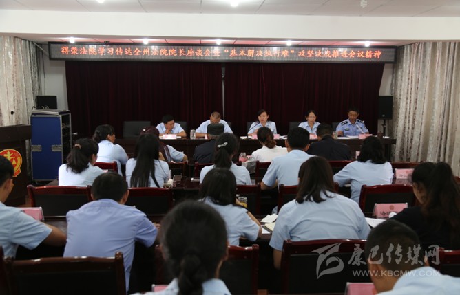 本網(wǎng)訊(志瑪擁忠)為深入學(xué)習(xí)貫徹黨的十九大和十九屆二中、三中全會精神,全面貫徹落實省委十一屆三次全會精神,8月6日,我院組織全院干警于四樓會議室召開干警大會,傳達全州法院院長座談會暨“基本解決執(zhí)行難”攻堅決戰(zhàn)推進會精神,院黨組書記、院長孫菊花主持會議。