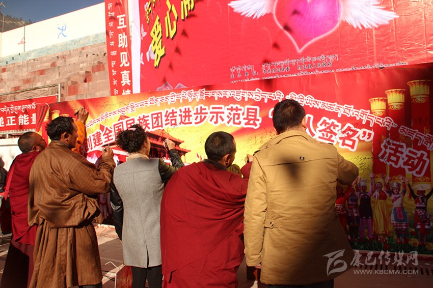 其實(shí),在白玉,像澤稱降措這樣感人肺腑的故事絕非個(gè)案。采訪中,筆者細(xì)細(xì)梳理五年來(lái)白玉的創(chuàng)建舉措與成績(jī),完全可以用“務(wù)實(shí)”“扎實(shí)”這四個(gè)字來(lái)形容。自2014年創(chuàng)建活動(dòng)啟動(dòng)以來(lái),縣委、縣政府嚴(yán)格按照“三年創(chuàng)建、四年提升”要求,緊扣“八進(jìn)活動(dòng)、共建對(duì)子”兩個(gè)關(guān)鍵,聚焦“民族團(tuán)結(jié)促發(fā)展、民族團(tuán)結(jié)促穩(wěn)定、民族團(tuán)結(jié)促民生”三大目標(biāo),采取“精準(zhǔn)安排、精準(zhǔn)施策、精心打造、精細(xì)管理”四項(xiàng)舉措,并通過(guò)層層簽訂目標(biāo)責(zé)任書和層層落實(shí)創(chuàng)建標(biāo)準(zhǔn)、測(cè)評(píng)指標(biāo),進(jìn)而形成了“黨委統(tǒng)一領(lǐng)導(dǎo)、黨政齊抓共管、部門各司其職、社會(huì)廣泛參與”的創(chuàng)建工作格局;采取“年度定方案、季度有督查、月月抓推進(jìn)、層層重落實(shí)”的方式,通過(guò)召開專題會(huì)、動(dòng)員會(huì)、現(xiàn)場(chǎng)會(huì)、督導(dǎo)會(huì)、匯報(bào)會(huì)等形式,抓問(wèn)題、添措施、促整改、補(bǔ)短板、求提升,一系列動(dòng)真碰硬的推進(jìn),使得創(chuàng)建工作由“虛”變“實(shí)”;按照“精準(zhǔn)宣講、掛圖作戰(zhàn)、對(duì)單宣講、對(duì)村消號(hào)、定學(xué)式”的宣講思路,采取“縣到鄉(xiāng)、鄉(xiāng)進(jìn)村、村入戶、寺廟與僧尼”四個(gè)面對(duì)面等方式,并結(jié)合常態(tài)化開展的“四下鄉(xiāng)”活動(dòng),廣泛學(xué)習(xí)宣傳黨的民族理論、宗教政策、法律法規(guī)以及各項(xiàng)惠農(nóng)惠民政策。五年來(lái),全縣累計(jì)出動(dòng)宣講服務(wù)人員1180人次,開展宣講宣教、“四下鄉(xiāng)”活動(dòng)以及民族團(tuán)結(jié)“八進(jìn)”活動(dòng)多達(dá)988場(chǎng)次,覆蓋基層干部、農(nóng)牧民群眾和及寺廟近8萬(wàn)人次,發(fā)放各類宣傳資料2.3萬(wàn)余份、圖書光盤4500余本(張),贈(zèng)送各種書籍4130余冊(cè),放映電影152場(chǎng)次;在主要街道、繁華路段、出租車頂屏、燈箱燈桿以及干線公路沿線堡坎,設(shè)置LED屏、宣傳牌、滾動(dòng)標(biāo)語(yǔ)和墻體標(biāo)語(yǔ),推送各類創(chuàng)建信息上萬(wàn)余條,在各機(jī)關(guān)、單位、醫(yī)院、學(xué)校、寺廟、鄉(xiāng)鎮(zhèn)、村組(社區(qū))設(shè)置民族團(tuán)結(jié)標(biāo)語(yǔ)、宣傳櫥窗、展板和文化墻,推出各類宣傳欄2145個(gè)、宣傳展板 435個(gè);在縣級(jí)宣傳平臺(tái)開設(shè)專欄,完成各類主題宣傳300余場(chǎng)次;舉辦創(chuàng)建“萬(wàn)人簽名”、鍋莊節(jié)、演講比賽、籃球友誼賽、知識(shí)競(jìng)賽、文藝演出等各類民族團(tuán)結(jié)主題活動(dòng)近20場(chǎng),實(shí)現(xiàn)了創(chuàng)建宣講宣傳宣教全方位、多層面、立體式和廣覆蓋;切實(shí)將民族團(tuán)結(jié)工作與脫貧攻堅(jiān)、基層黨建、群眾工作、鄉(xiāng)村治理、依法治縣等有機(jī)結(jié)合,大力開展干群結(jié)對(duì)認(rèn)親、干部聯(lián)寺聯(lián)僧、支部共建共創(chuàng)以及警民共建等活動(dòng);切實(shí)在廣大農(nóng)牧民群眾、幫扶援建隊(duì)伍、宗教寺院、學(xué)校師生、企業(yè)以及部隊(duì)中發(fā)現(xiàn)典型、宣傳典型,進(jìn)而在全縣上下形成了“學(xué)先進(jìn)、趕先進(jìn)、當(dāng)標(biāo)兵”的濃厚氛圍;采取政策傾斜、整合項(xiàng)目、配套資金等措施,狠抓示范點(diǎn)規(guī)范化建設(shè)。目前,全縣所有鄉(xiāng)(鎮(zhèn))、縣級(jí)黨政機(jī)關(guān)、武警部隊(duì),45%以上的村(社區(qū))、企事業(yè)單位和寺廟已成為民族團(tuán)結(jié)進(jìn)步示范地區(qū)或示范單位;……精準(zhǔn)發(fā)力、持續(xù)給力的創(chuàng)建活動(dòng),有效形成了創(chuàng)建活動(dòng)“人人參與、人人推動(dòng)、人人負(fù)責(zé)、人人共享”的喜人局面。