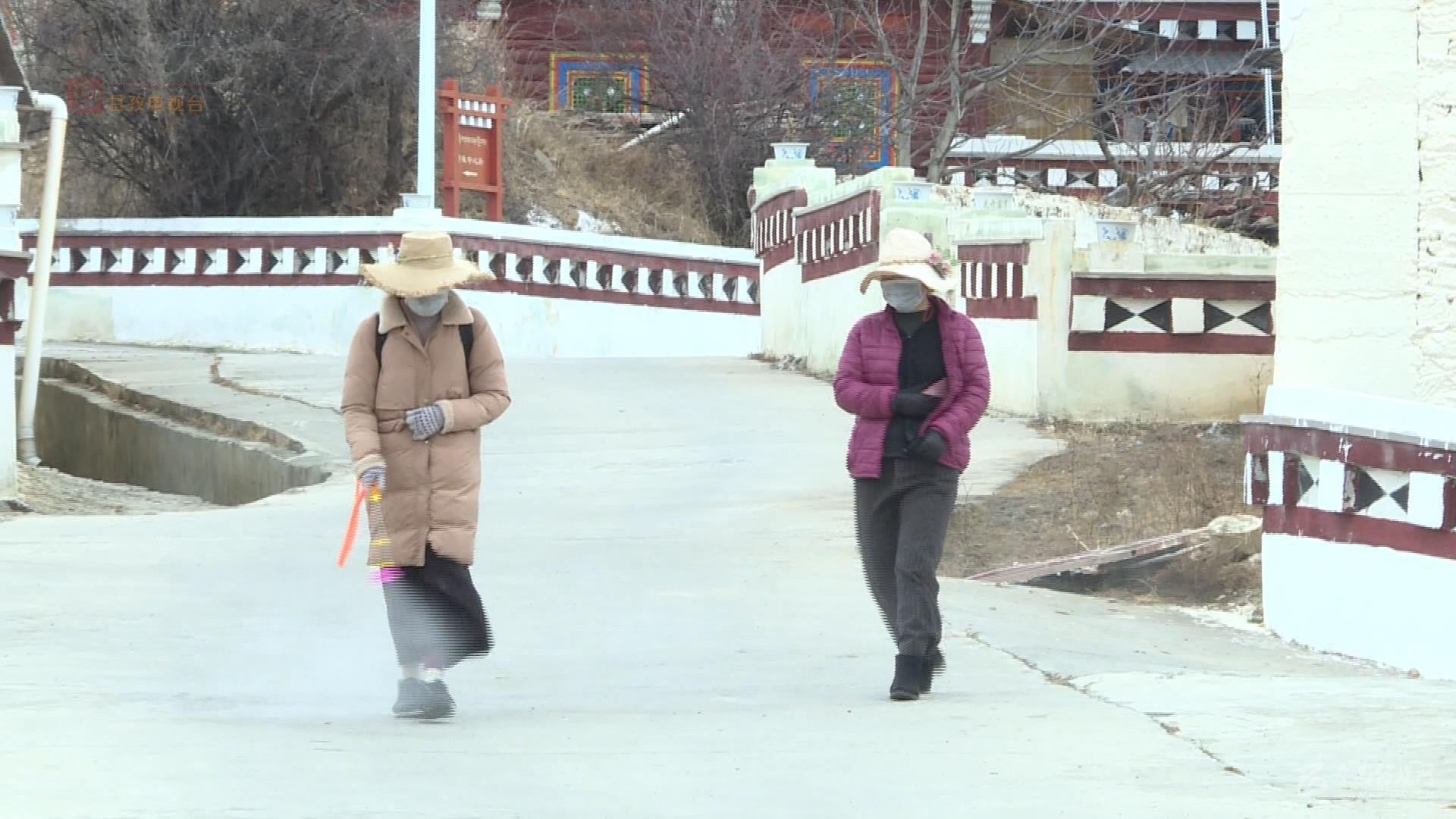 除了7個(gè)州縣級(jí)卡點(diǎn)外,在各鄉(xiāng)村同樣是嚴(yán)防死守,筑牢了嚴(yán)控疫情的第一防線。在距離縣城三公里的格西鄉(xiāng)若珠村村口,我們看到村黨支部書記澤機(jī)和村委會(huì)主任尼瑪降澤頂著寒風(fēng)依然駐守在卡點(diǎn)上。尼瑪降澤介紹說全村有65戶283人,他說支部書記負(fù)責(zé)村口卡點(diǎn)的24小時(shí)值守,其余六名村干部就負(fù)責(zé)包戶巡邏檢查,每天村里的消毒,村民的體溫監(jiān)測(cè)統(tǒng)計(jì)等等,大家都繃緊著嚴(yán)防死守這根弦。