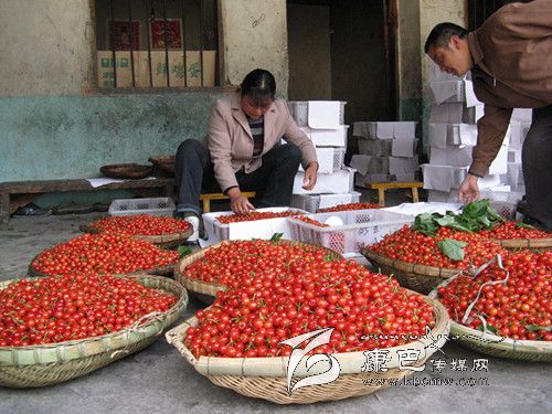 杵坭鄉(xiāng)村民李成英告訴記者,今年櫻桃的批發(fā)價格漲幅很大,主要原因是雨水太少,櫻桃成熟得比較晚。成都進來的收購商大量收購,櫻桃供應量又少,因此批發(fā)價格一般都在15元到18元左右。雖然今年的櫻桃價格很高,可是產量低,她家有80棵櫻桃,才賣了7000元。由于本地櫻桃成熟比較晚,櫻桃降價要到5月初。李成英說,得妥、甘谷地、大壩、田壩等地的櫻桃成熟后,櫻桃價格會大幅下降。