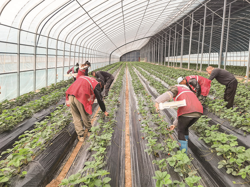 時下,在理塘縣濯?,F(xiàn)代農(nóng)業(yè)產(chǎn)業(yè)園區(qū),120畝草莓經(jīng)過100天的生長后迎來了收獲季。走進(jìn)園區(qū)康呷村種植基地,大棚里的草莓長勢喜人,當(dāng)?shù)?0多名農(nóng)牧民群眾正忙著疏葉、采摘,大棚里洋溢著豐收的喜悅?!耙郧拔覀兂朔N青稞、土豆之外,其余大多數(shù)時間都到處去打臨時工,收入也很不穩(wěn)定,一年到頭只能掙幾千元?!爆F(xiàn)年25歲的濯桑鄉(xiāng)漢戈村民格絨志瑪如是說。