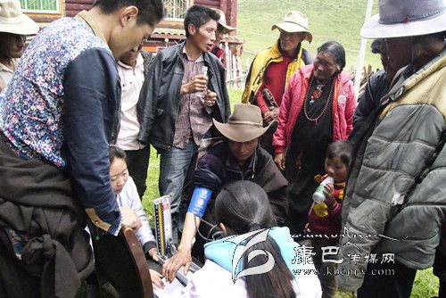計(jì)生指導(dǎo)站醫(yī)護(hù)人員在免費(fèi)為群眾測(cè)量血壓。