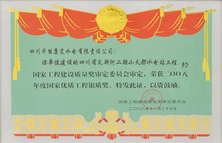 冷竹關(guān)水電站和小天都電站均獲得四川省建設(shè)工程最高質(zhì)量獎(jiǎng)“天府杯”金獎(jiǎng),接受了朱镕基總理、第十一世班禪等黨和國家領(lǐng)導(dǎo)人多次視察。2006年11月,“康瀘電網(wǎng)”與小天都電站35千伏系統(tǒng)并網(wǎng)成功,結(jié)束了全省最后一個(gè)地市州未并入主網(wǎng)而“孤網(wǎng)運(yùn)行”的歷史。小天都電站還是四川省首個(gè)獲得“國家優(yōu)質(zhì)工程獎(jiǎng)”的水電站。