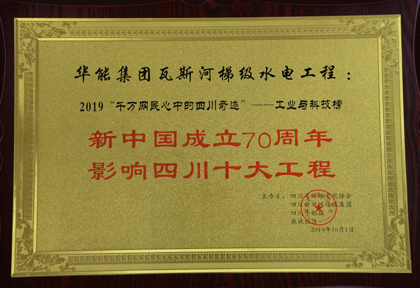 作為在國內(nèi)產(chǎn)生巨大影響的四川境內(nèi)的標(biāo)志性工程,2019年10月,瓦斯河梯級(jí)水電工程成功入選“新中國成立70周年影響四川十大工程”工業(yè)與科技榜。
