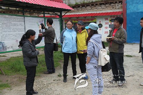 建紅校長(zhǎng)(左一)正在接受記者采訪。