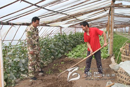 文君健(左)向蔬菜種植戶了解種植情況。