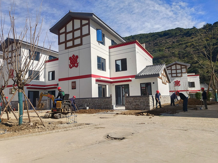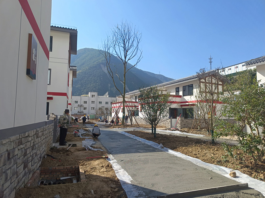 11月5日,記者走進(jìn)瀘定縣德威鎮(zhèn)奎武村“9·5”瀘定地震災(zāi)后重建集中安置點(diǎn),只見一幢幢繪有“如意結(jié)”和穿斗裝飾等瀘定傳統(tǒng)建筑元素以及“瀘定紅”“紅飄帶”等民族特色的安置房沿大渡河畔依次排開,一條條寬敞平整的水泥硬化道路將這些風(fēng)貌一致、戶型合理、結(jié)構(gòu)安全的安置房屋串聯(lián)起來。幾十名工人正在安置點(diǎn)內(nèi)忙碌,有的在鋪設(shè)路面、有的在栽種綠化樹、有的在搬運(yùn)廢渣……,拿到鑰匙的部分村民正在進(jìn)行室內(nèi)裝修,現(xiàn)場一派繁忙景象。