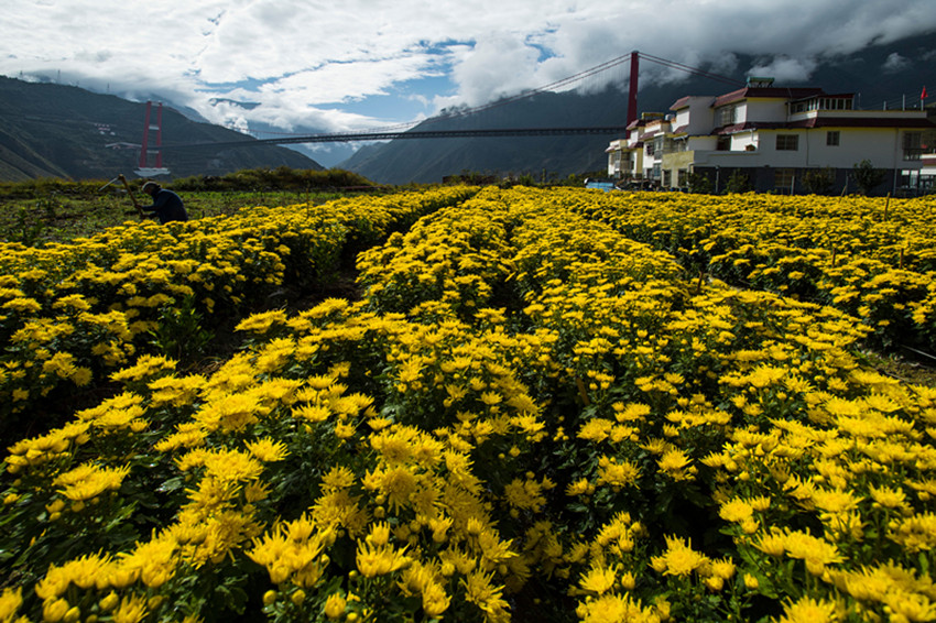 瀘定縣金絲皇菊產(chǎn)業(yè)基地。