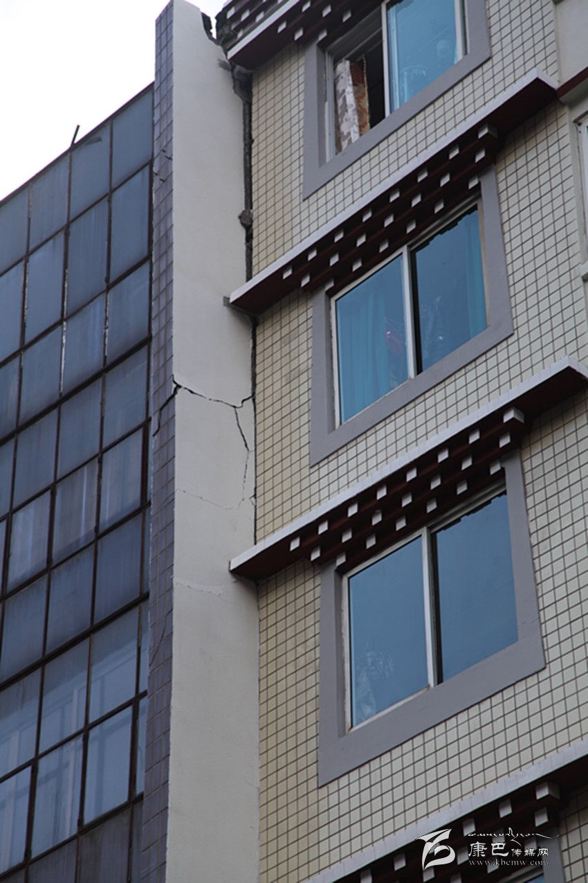 剛沖出報社不遠(yuǎn),記者就發(fā)現(xiàn)光明路光明小區(qū)附近的小巷中有一些外墻磚不規(guī)則地散落在地上,抬頭一看,發(fā)現(xiàn)一幢建筑的外墻已經(jīng)脫落了一大塊;在州統(tǒng)計局上側(cè),一幢建筑外墻出現(xiàn)了裂縫,過往的人們都在紛紛觀望,還有人在用手機(jī)拍攝。在西大街,有一幢建筑的陽臺出現(xiàn)移位,與主體建筑間形成了裂縫;在州人民醫(yī)院,門診部大樓出現(xiàn)了嚴(yán)重裂縫,大樓內(nèi)的人員已經(jīng)全部撤離。記者在采訪中發(fā)現(xiàn),此次地震使康定城區(qū)內(nèi)建筑出現(xiàn)了不同程度的外墻磚脫落、裂縫等,城郊有圍墻倒塌的情況發(fā)生,城區(qū)沒有出現(xiàn)建筑物倒塌的情況。