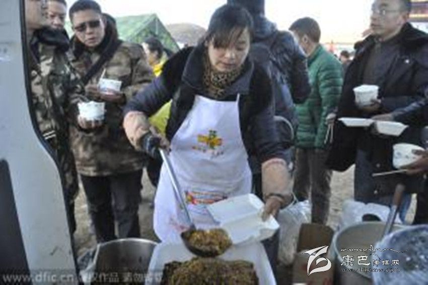據(jù)了解,韓大哥是這家飯店的老板之一,他是仁壽縣人,幾年前和朋友來到新都橋開始經(jīng)營飯店??刀?.3級地震發(fā)生時,他人在成都。但看到災情發(fā)生,韓大哥立即和飯店另外幾個合伙人決定到安置點免費送盒飯,“我在當?shù)刈隽?、7年生意,現(xiàn)在出了事情,就應該伸手支援嘛!”據(jù)韓大哥介紹,此次地震發(fā)生后,新都橋80%左右的飯店都已經(jīng)關門,他們的飯店因為還有一些接待工作,仍在正常營業(yè)。自11月23日晚上,他家的飯店就主動為塔公鎮(zhèn)的安置點免費派送盒飯,“包括中午和晚上兩頓,兩葷兩素一湯的配置。”因為太忙, 韓大哥來不及仔細統(tǒng)計,他大概知道每天送出的盒飯在1200盒到1500盒之間,每天送出盒飯的成本在4、5千左右。但在他看來,這些其實都算不上什么,“能為災區(qū)出一份力,我們就很滿足了,我們打算一直送到抗震救災工作結(jié)束,也就是直到災民有條件自己做飯的時候。”“這邊天氣很冷,他們吃的一般是些面包、牛奶之類的干糧,我們就是想讓大家吃到熱飯、熱菜。”據(jù)韓大哥介紹,每天飯店都會派出3、4個人將盒飯運送到安置點,“只要有人需要我們都會分發(fā)盒飯,包括一些志愿者和武警官兵也吃我們的飯。