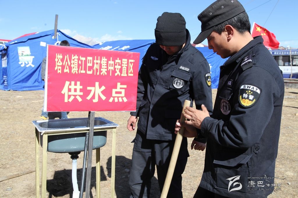 走進(jìn)江巴牧民新村安置點(diǎn)我們看見幾位管道工人和特警正在忙碌著挖埋管道,管道的旁邊豎起了一個(gè)紅色的牌子,上面寫著塔公鎮(zhèn)江巴村集中安置區(qū)供水點(diǎn),據(jù)挖埋管道的人員介紹,按照康定縣水務(wù)局的要求,安置區(qū)供水點(diǎn)經(jīng)過(guò)兩天的時(shí)間總共建成了兩處,康定縣水務(wù)局在災(zāi)區(qū)明確方式,分類援助,主要從水源、管道、集中供水點(diǎn)和水質(zhì)保障四個(gè)環(huán)節(jié)解決供水問(wèn)題。保證了大批災(zāi)區(qū)群眾和救援人員的生活用水,有效預(yù)防了疫情的發(fā)生。