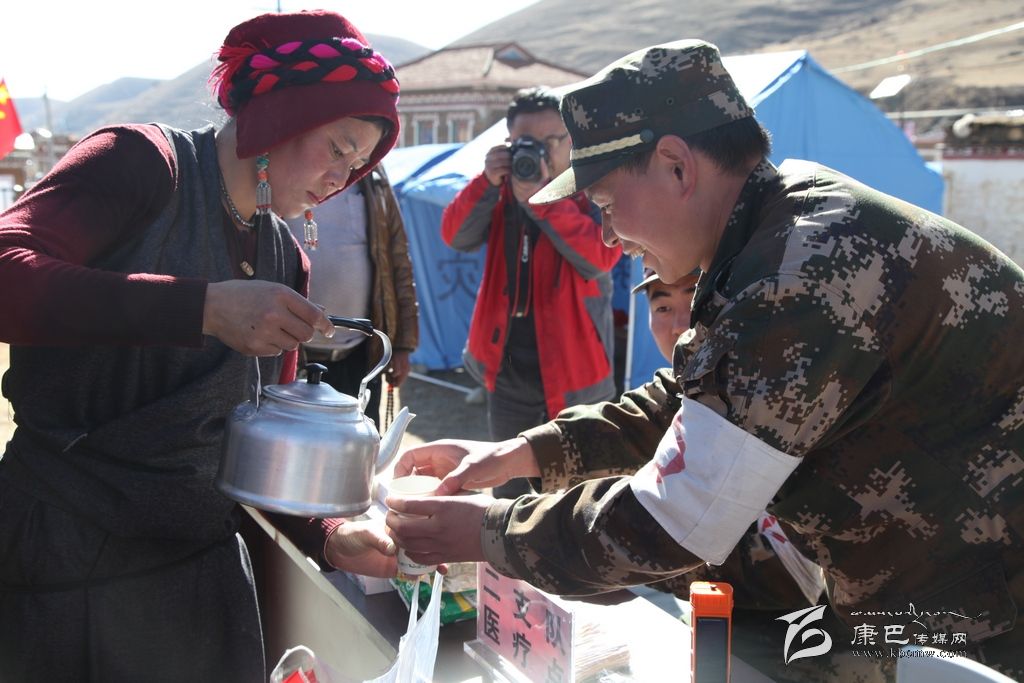 一位媒體同仁在接到她們送上的酥油茶時(shí)說(shuō):“這酥油茶特別香,熱乎乎的,真的很好喝,從嘴里暖到了心里。”四川部隊(duì)武警二支隊(duì)的軍醫(yī)陳海波告訴記者:“今天早上就看見她們?cè)谶@里送酥油茶,她們一直穿梭在人群里,我們也拿到了她們送上的酥油茶。心里特別的感動(dòng),有這樣的農(nóng)牧民,我們?yōu)榱怂麄冊(cè)倏嘣倮垡灿X(jué)得值得。”